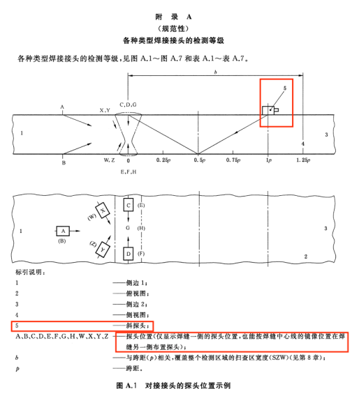 15 | ![]() | ![]() | 增加了插人式管座角接頭直探頭位置的圖示(見(jiàn)圖A.3,2013年版的圖A.3) |