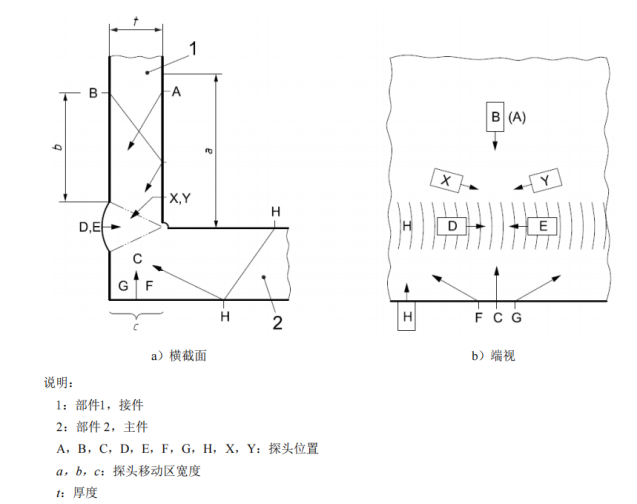 10 | 8?探頭移動(dòng)區(qū) 探頭移動(dòng)區(qū)應(yīng)足夠?qū)挘员WC聲束能覆蓋整個(gè)檢測(cè)區(qū)域(見(jiàn)圖2)。增加探測(cè)面,比如在焊接接頭雙面進(jìn)行掃查,可縮短探頭移動(dòng)區(qū)寬度。探頭移動(dòng)區(qū)表面應(yīng)平滑,無(wú)焊接飛濺、鐵屑、油垢及其他外部雜質(zhì)。探頭移動(dòng)區(qū)表面的不平整度,不應(yīng)引起探頭和工件的接觸間隙超過(guò)0.5mm。如果間隙超標(biāo),應(yīng)修整探頭移動(dòng)區(qū)表面。當(dāng)焊縫表面局部變形導(dǎo)致探頭與焊縫的間隙大于1mm,可在受影響位置用其他角度探頭進(jìn)行補(bǔ)充掃查。如果該掃查能彌補(bǔ)未掃查到的檢測(cè)區(qū)域,此局部變形是允許的。探頭移動(dòng)區(qū)和聲束反射面應(yīng)允許無(wú)干擾的耦合劑和反射物。 | 9?掃查面準(zhǔn)備 掃查面應(yīng)足夠?qū)?以確保聲束覆蓋整個(gè)檢測(cè)區(qū)域(見(jiàn)圖2)。或者,如果能實(shí)現(xiàn)焊接接頭雙面掃查以確保聲束覆蓋整個(gè)檢測(cè)區(qū)域,可縮短掃查面寬度。掃查面表面應(yīng)平滑,無(wú)焊接飛濺、鐵屑、油垢及其他外部雜質(zhì)。掃查面表面的不平整度,不應(yīng)引起探頭和檢測(cè)表面的間隙大于0.5mm。如果間隙超標(biāo),應(yīng)修整掃查面表面。當(dāng)遇到表面局部變化,如沿著焊趾掃查,導(dǎo)致探頭與表面的間隙大于1mm時(shí),僅當(dāng)在受影響部位增加至少一個(gè)其他角度的探頭進(jìn)行補(bǔ)充掃查時(shí)才能被允許。該補(bǔ)充掃查應(yīng)解決因間隙超標(biāo)引起聲束未覆蓋整個(gè)檢測(cè)區(qū)域的問(wèn)題。掃查面和聲束反射面應(yīng)允許無(wú)于擾的耦合劑和反射物。 | 更改了掃查面準(zhǔn)備要求(見(jiàn)第9章,2013年版的第8章) |